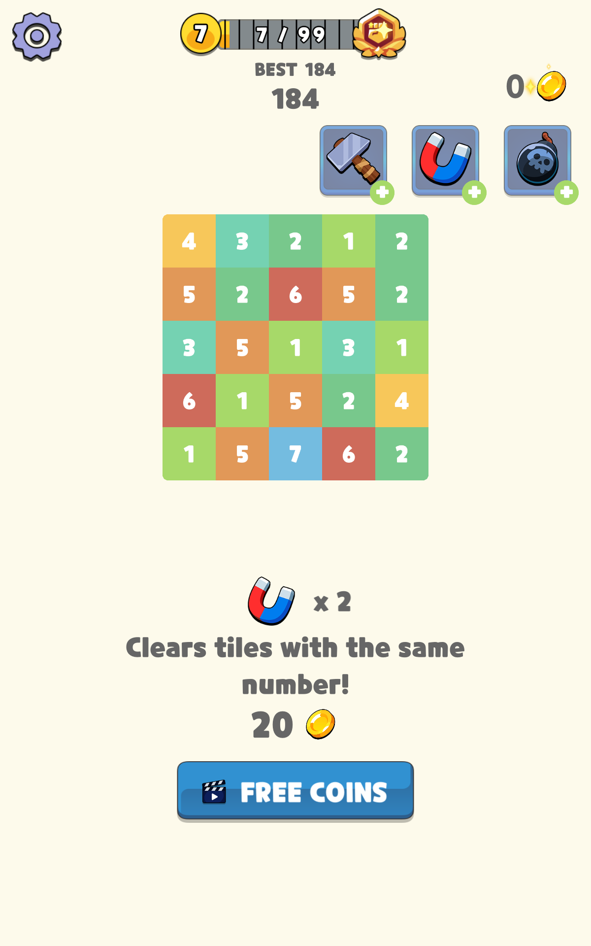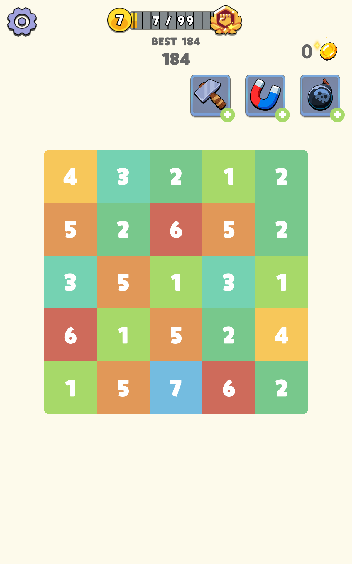머지 하니? 게임은 같은 숫자를 연속으로 더하는 간단한 게임입니다. 모든 연령대의 사람들이 즐길 수 있는 쉬운 게임입니다. 더 높은 점수를 달성해 보세요. 할 수 있습니다!